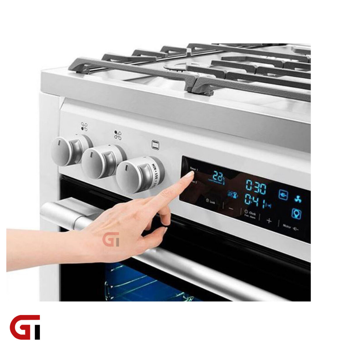 1- این محصول دارای یک صفحه نمایش دیجیتالی و تمام لمسی است که به شما امکان اعمال تغییرات را می‌دهد. 2- اجاق گاز دوو دارای سرشعله‌های ایتالیایی است که کیفیت و ماندگاری بالایی دارند. 3- محصول مورد نظر مجهز به دماسنج دیجیتالی دقیق است که به شما امکان رویت و تنظیم دمای فر را می‌دهد. 4- این محصول دارای فن گردش هوای داغ و المنت برقی است که باعث پخت یکنواخت غذا می‌شود.