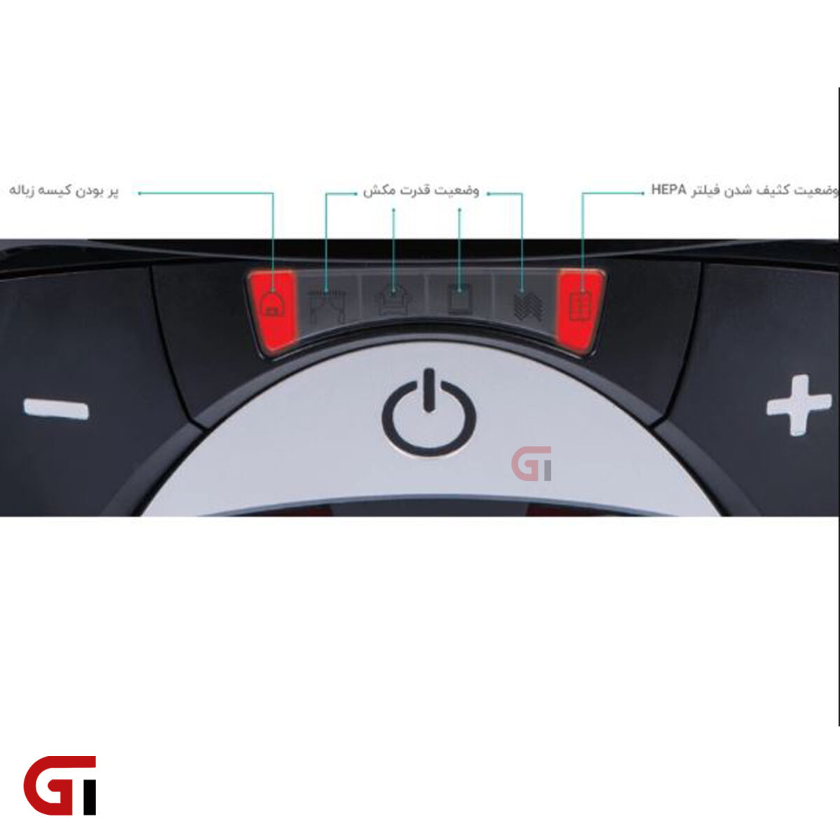 سایر توضیحات:دارای ۸ مرحله فیلتراسیون / تنظیم الکتریکی قدرت مکش / کنترل پنل LED روی بدنه / گیره نگه دارنده ملحقات / نشانگر وضعیت فیلتر HEPA