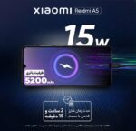باتری 5200 میلیآمپر ساعتی Redmi A5 ظرفیت قابل توجهی دارد که برای یک روز کامل استفاده معمولی کاملاً کفایت میکند. پشتیبانی از شارژ با توان 15 واتی، شارژ نسبتاً متوسطی را ارائه میدهد و زمان شارژ کامل ممکن است کمی طولانیتر باشد اما این موضوع با ظرفیت بالای باتری جبران میشود.