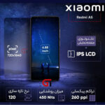 Redmi A5 به نمایشگر 6.88 اینچی IPS LCD مجهز شده است که نرخ تازهسازی 120 هرتز آن یکی از ویژگیهای قابل توجه در این رده قیمتی محسوب میشود. رزولوشن 720 در 1640 پیکسل با تراکم حدود 260 پیکسل بر اینچ کیفیت تصویر معمولی و قابل قبولی ارائه میدهد، هرچند در مقایسه با گوشیهای میانرده بالاتر وضوح پایینتری دارد. روشنایی 450 نیت و محافظت با سختی Mohs سطح 5 تضمین میکند که نمایشگر در شرایط نوری مختلف عملکرد قابل قبولی داشته باشد و تا حدی در برابر خط و خش مقاومت کند. نسبت صفحه به بدنه حدود 84.1 درصد است که موجب شده حاشیهها نسبتا باریک باشند و تجربه دیداری مطلوبی در تماشای فیلم یا وبگردی فراهم شود.