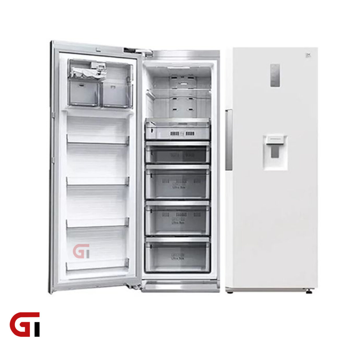 بخش فریزر هم با ظرفیت قابل توجه ۲۳۰ لیتر، به ۲ طبقهی اصلی و ۵ کشوی عمیق و شفاف مجهز است. این ترکیب هوشمندانه از طبقات و کشوها، امکان دستهبندی دقیق و انجماد انواع گوشت، مرغ، ماهی، سبزیجات و سایر مواد غذایی را به بهترین شکل ممکن فراهم میآورد و دسترسی به آنها را بسیار آسان میکند. ۲ قفسه هم روی درب فریزر برای اقلام کوچکتر و پرمصرفتر تعبیه شده است. نورپردازی LED داخلی در هر دو بخش یخچال و فریزر، روشنایی یکنواخت و کاملی را ایجاد میکند.