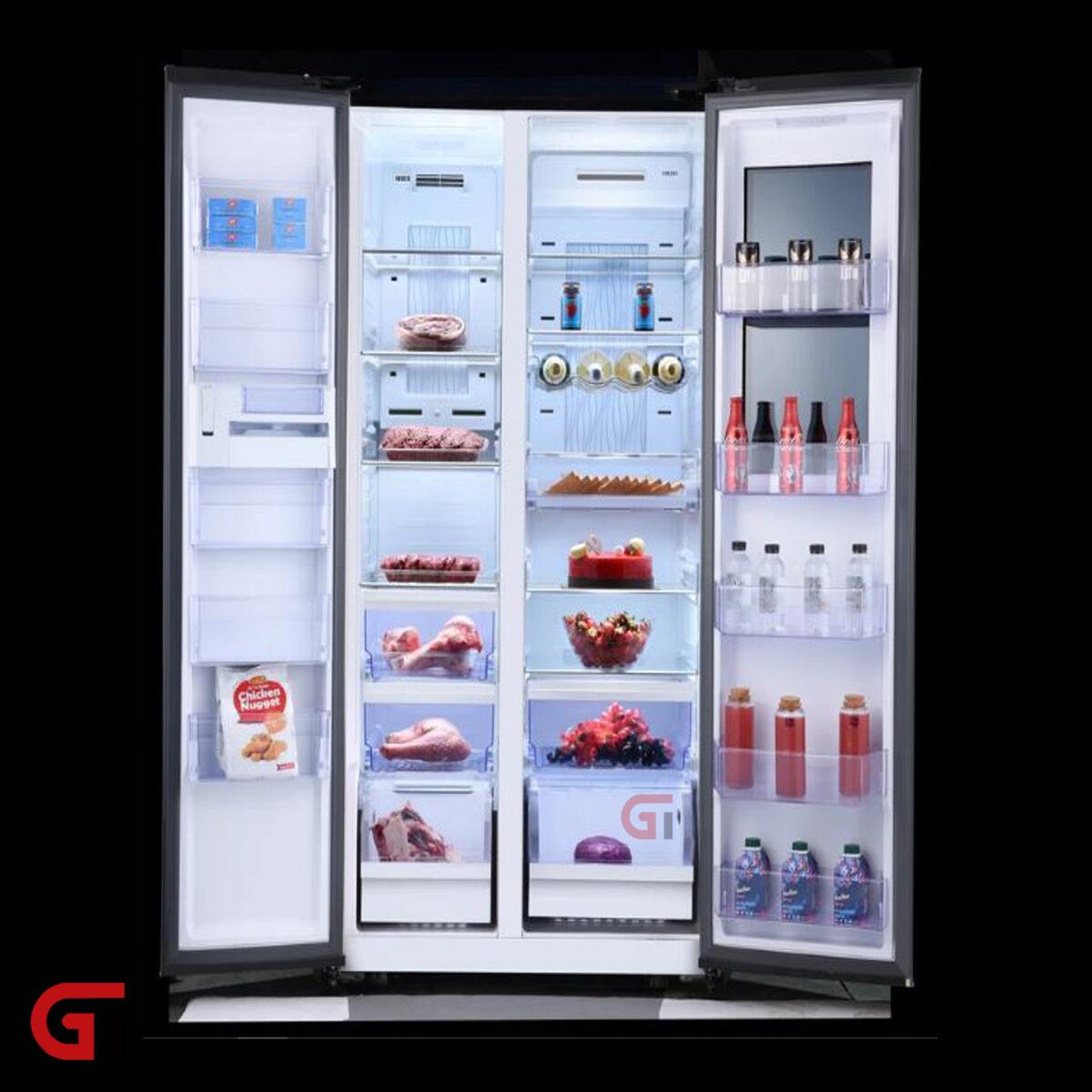 تمام طبقات فریزر بصورت کشویی درب بازشونده هستند، درب دوگانه دور این دور (door in door) برای بهینه سازی مصرف و دسترسی سریع به محتوای پرمصرف، فن گردش هوای DC برای یخچال و فریزر، گردش هوای چندگانه سیستم، حفظ تازگی مواد غذایی و عیب یابی خودکار موتور اینورتر |